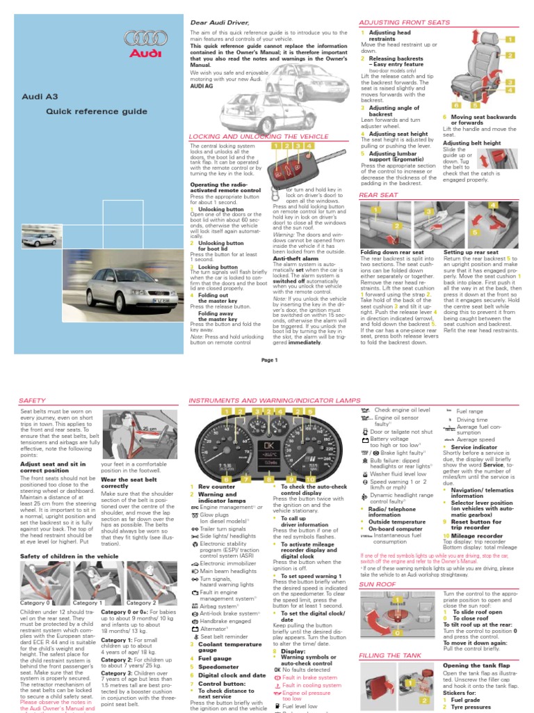 AUDI A3 2001 8L / 1.G Maintenance Manual (135 Pages)
