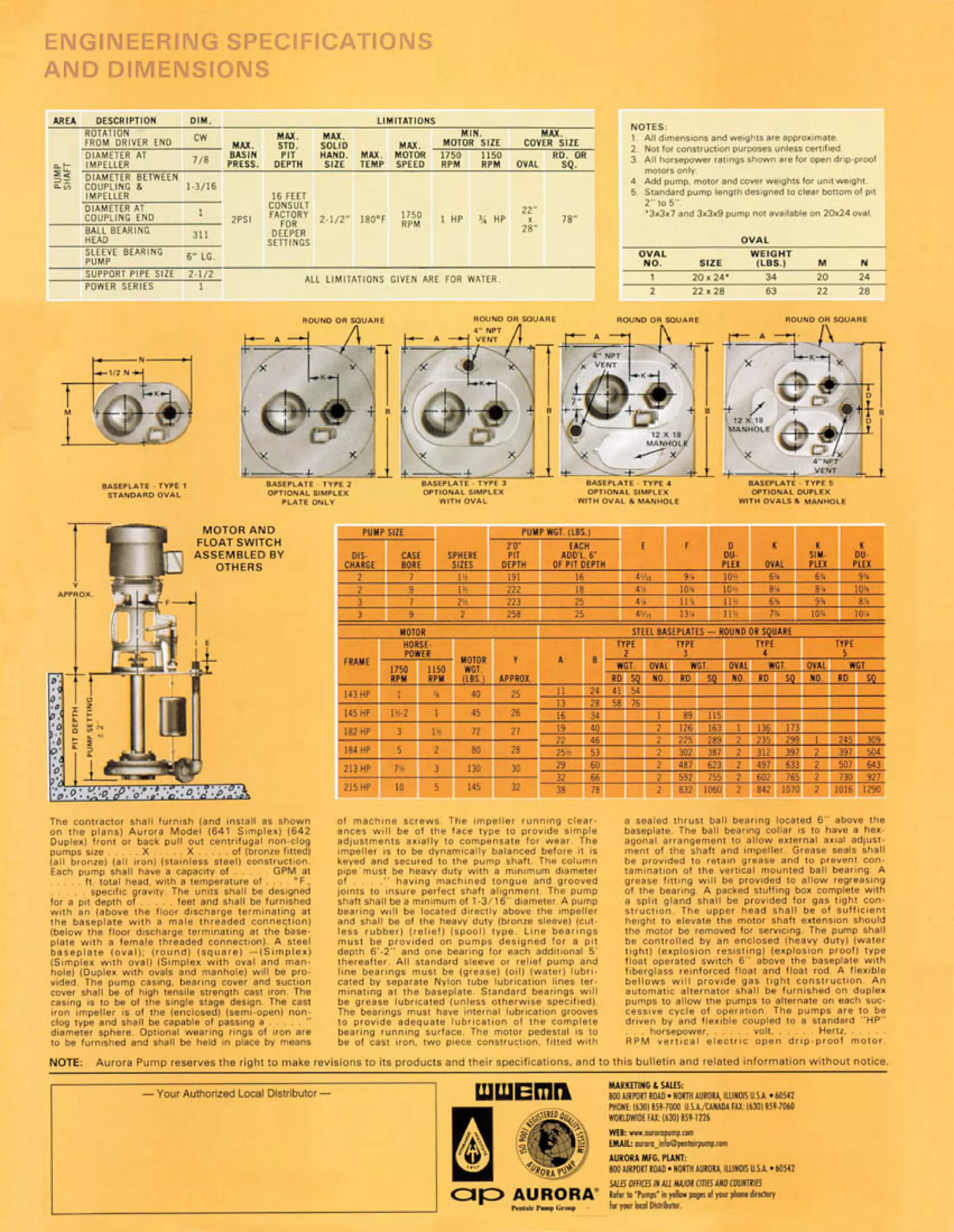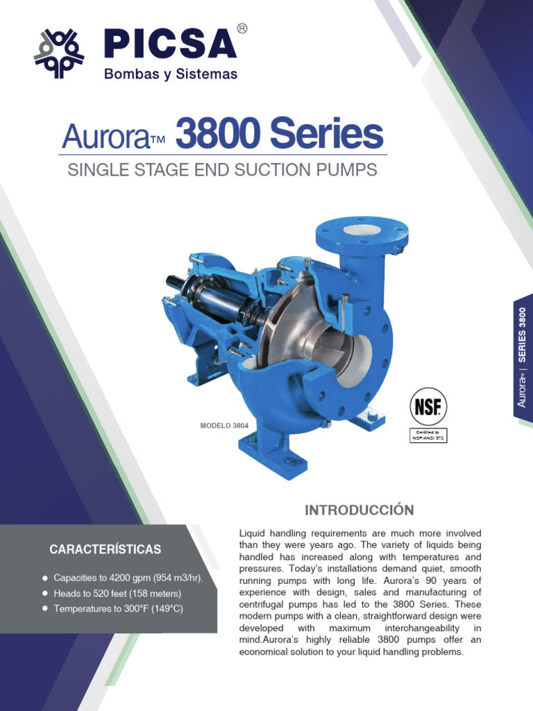 Ficha Tecnica AURORA PICSA Series 3800 PDF Bearing (Mechanical) Pump