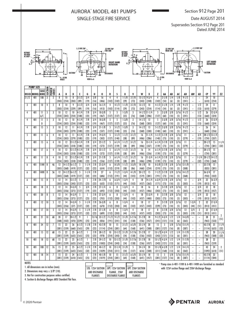 Aurora Fire Pump Selection Table PDF