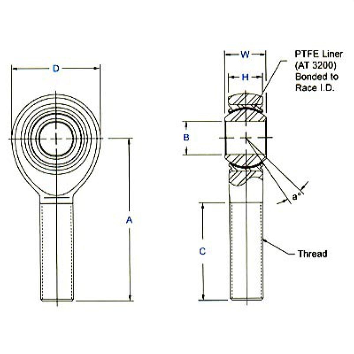 Aurora High Strength Alloy Steel Rod End, Female, PTFE Lined Pegasus