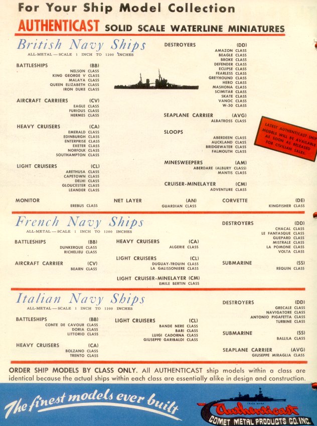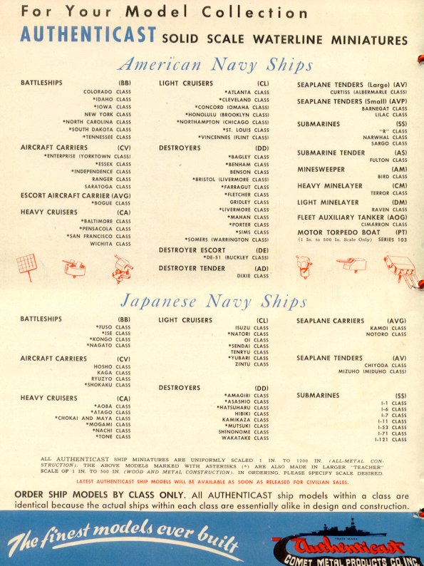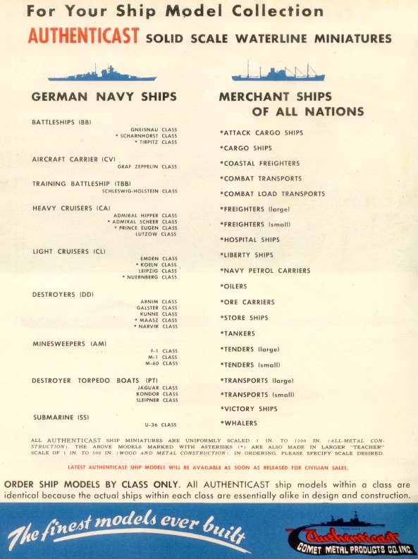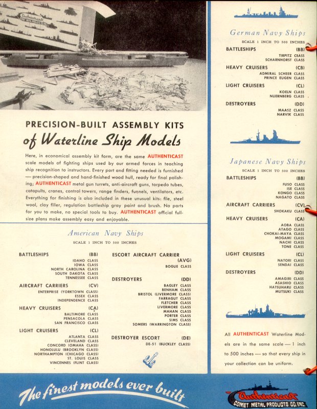 Vintage 1951 Comet Authenticast Catalog, Vol 2, ID Models, Ships