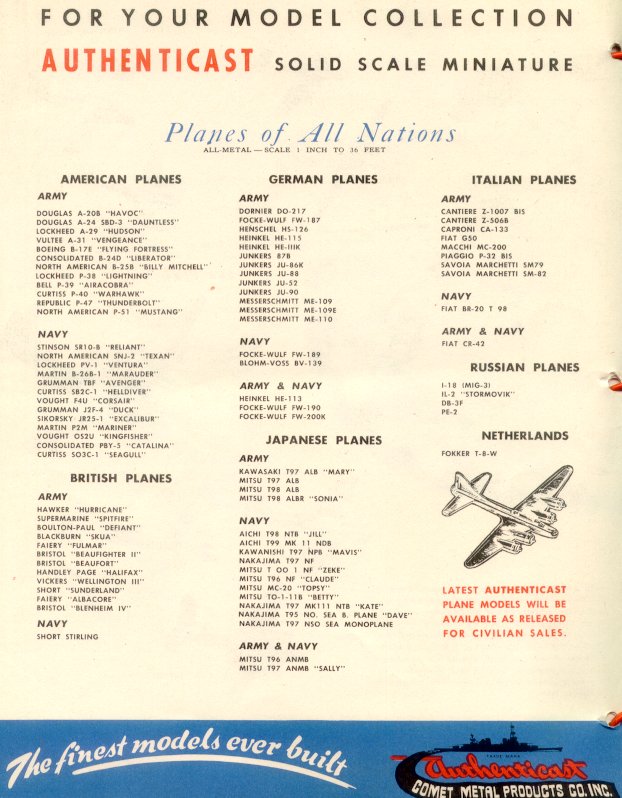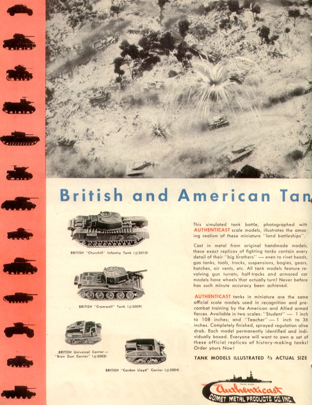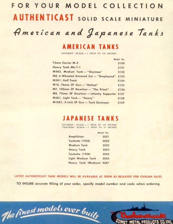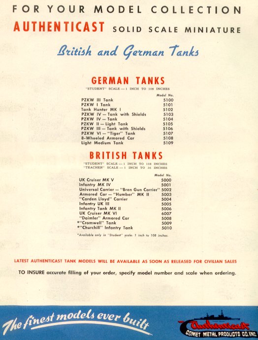 1950s AUTHENTICAST COMET METAL PRODUCTS CATALOG MODEL TANKS SHIPS AIR