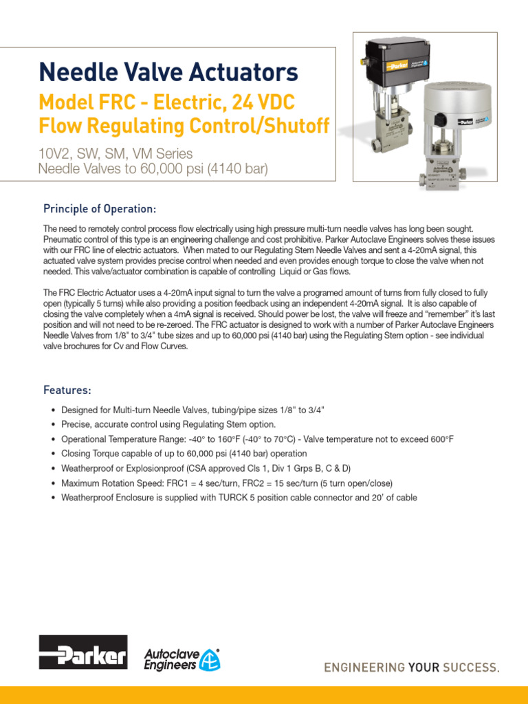 Autoclave Engineers Needle Valve Actuators DataSheet Download Free