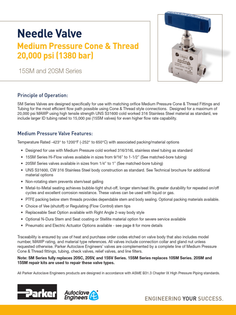 Autoclave Parker Needle Valves PDF Valve Pipe (Fluid Conveyance)