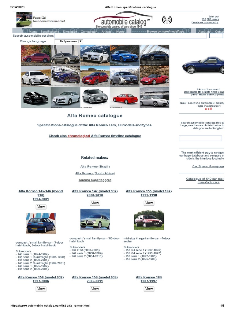 Alfa Romeo Catalogue Search AutomobileCatalog Change Language PDF