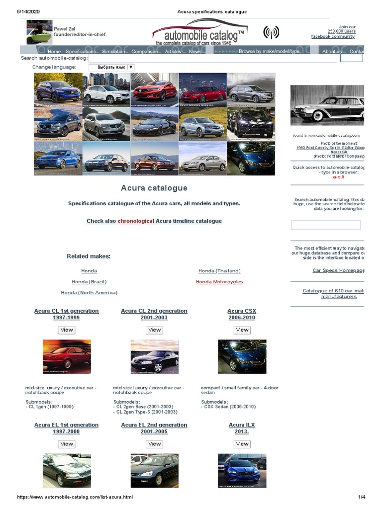 Acura Catalogue Search AutomobileCatalog Change Language PDF