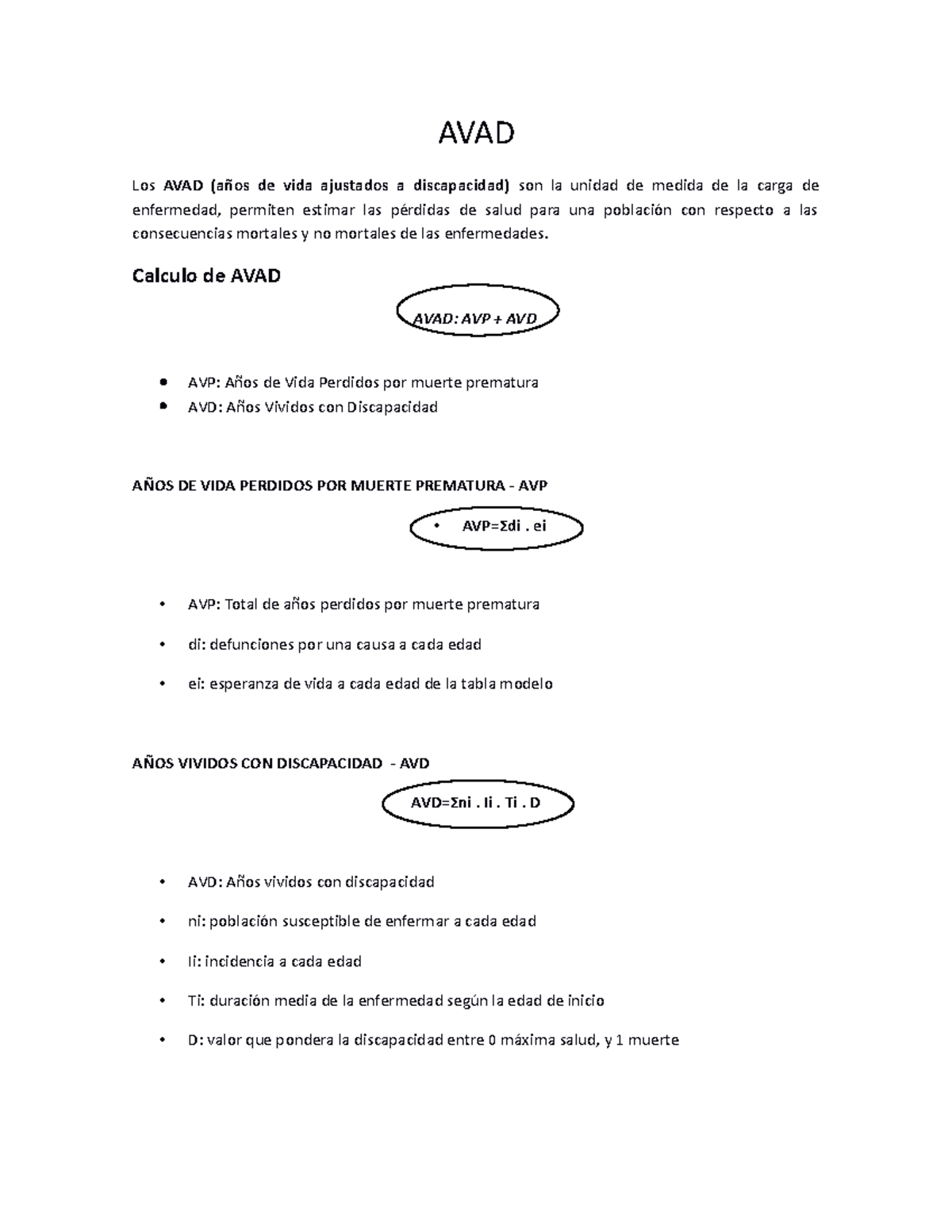 AVAD analisis de años de vida potencialmente pérdidos AVAD Los AVAD