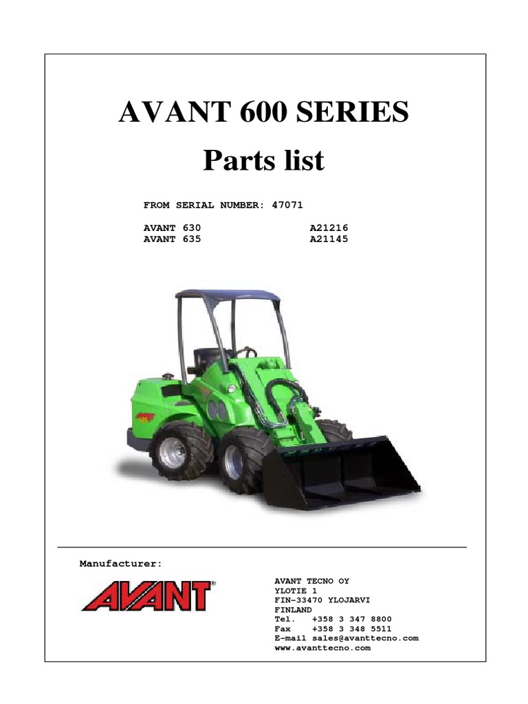 Avant 600 Series Parts List From Serial Number 47071 AVANT 630 A21216