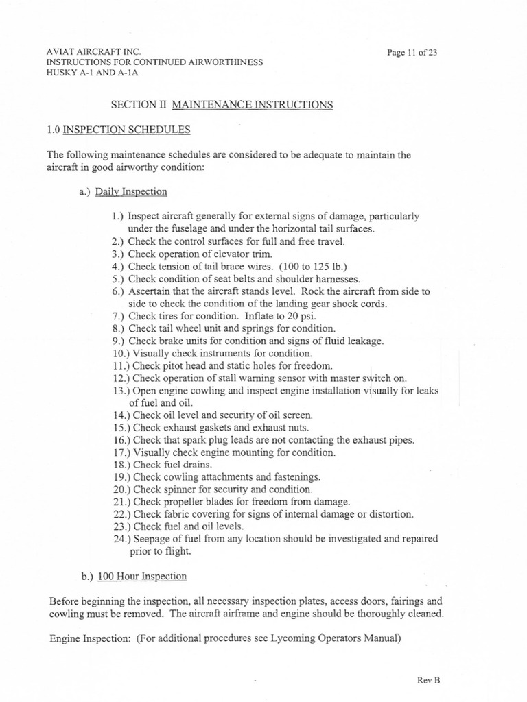 Aviat Husky A1 Maintenance Instructions PDF