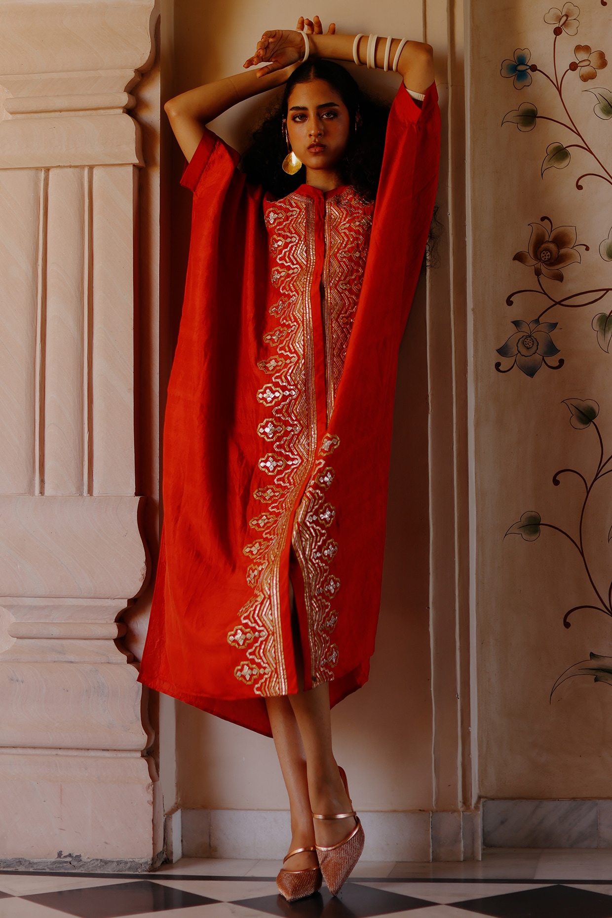 Orange Mulberry Silk Gota Work Kaftan Set by Avacara at Pernia's Pop Up