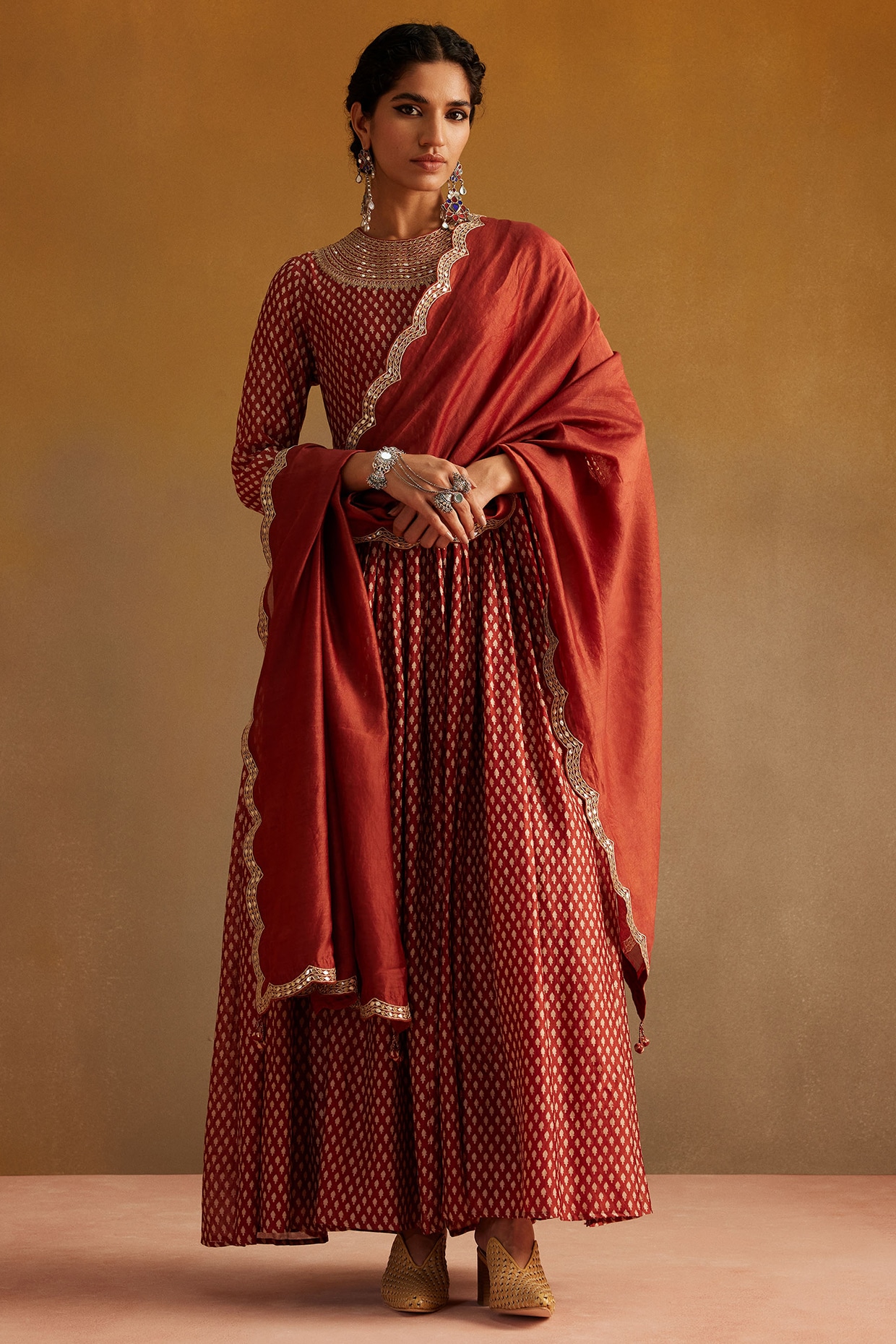 Red Chanderi Gota Embroidered Anarkali Set by Avacara at Pernia's Pop