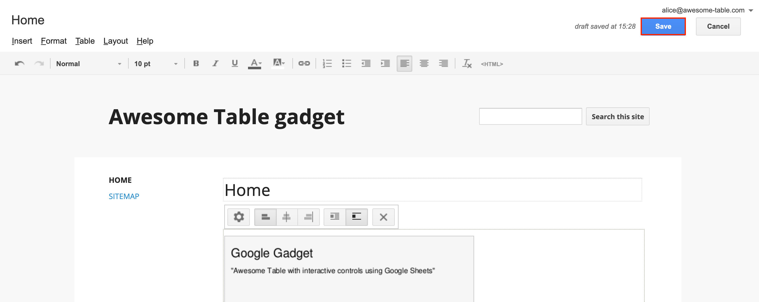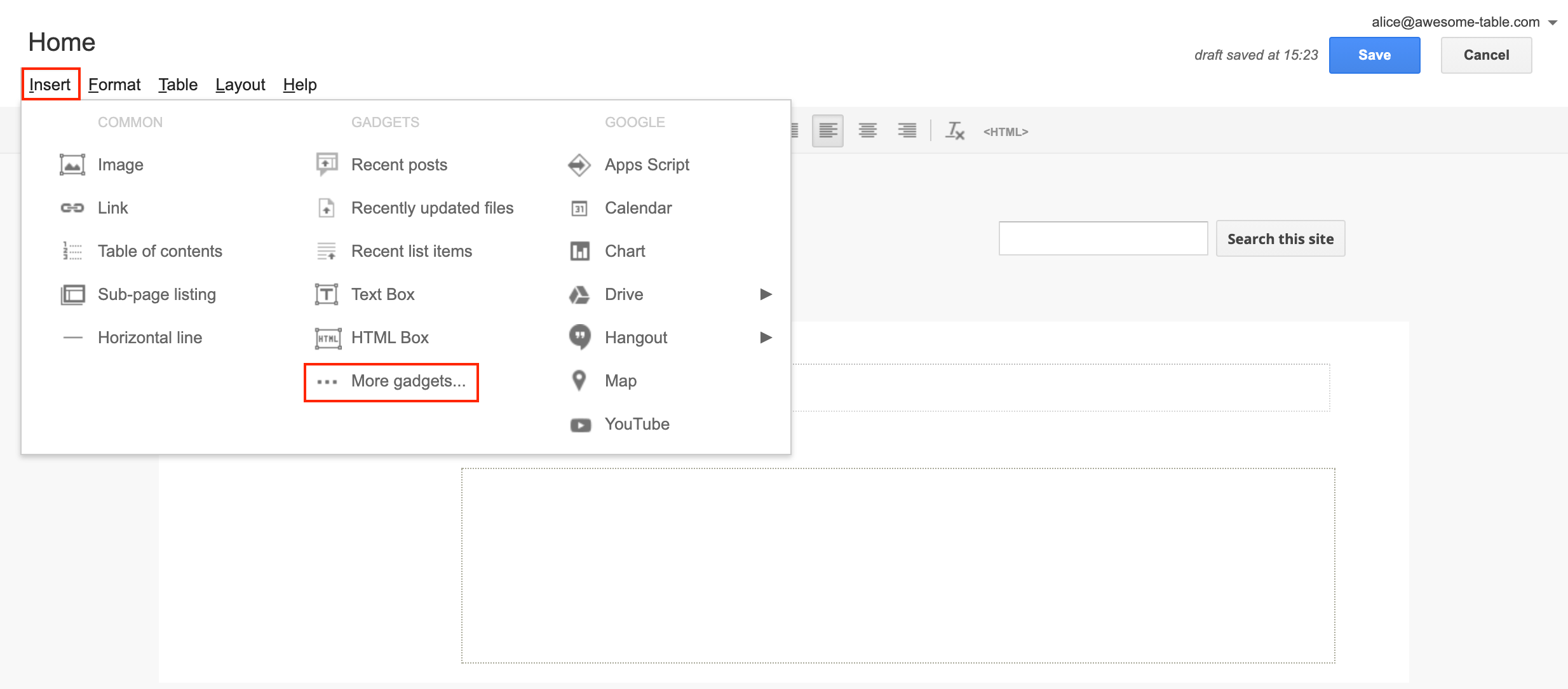 Embed Awesome Table in New Google Sites Documentation — Awesome Table