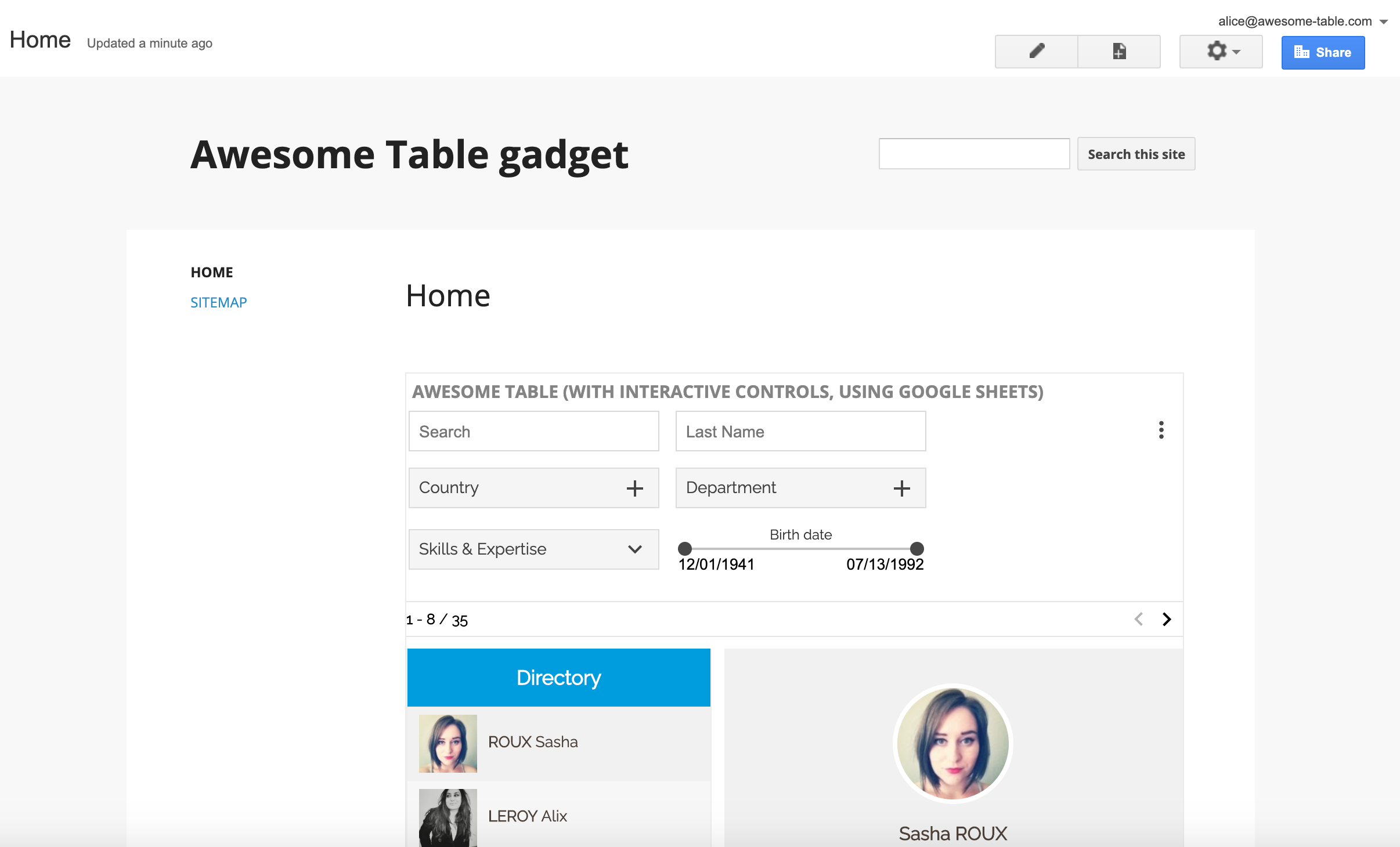 Embed Awesome Table in Classic Google Sites Documentation — Awesome