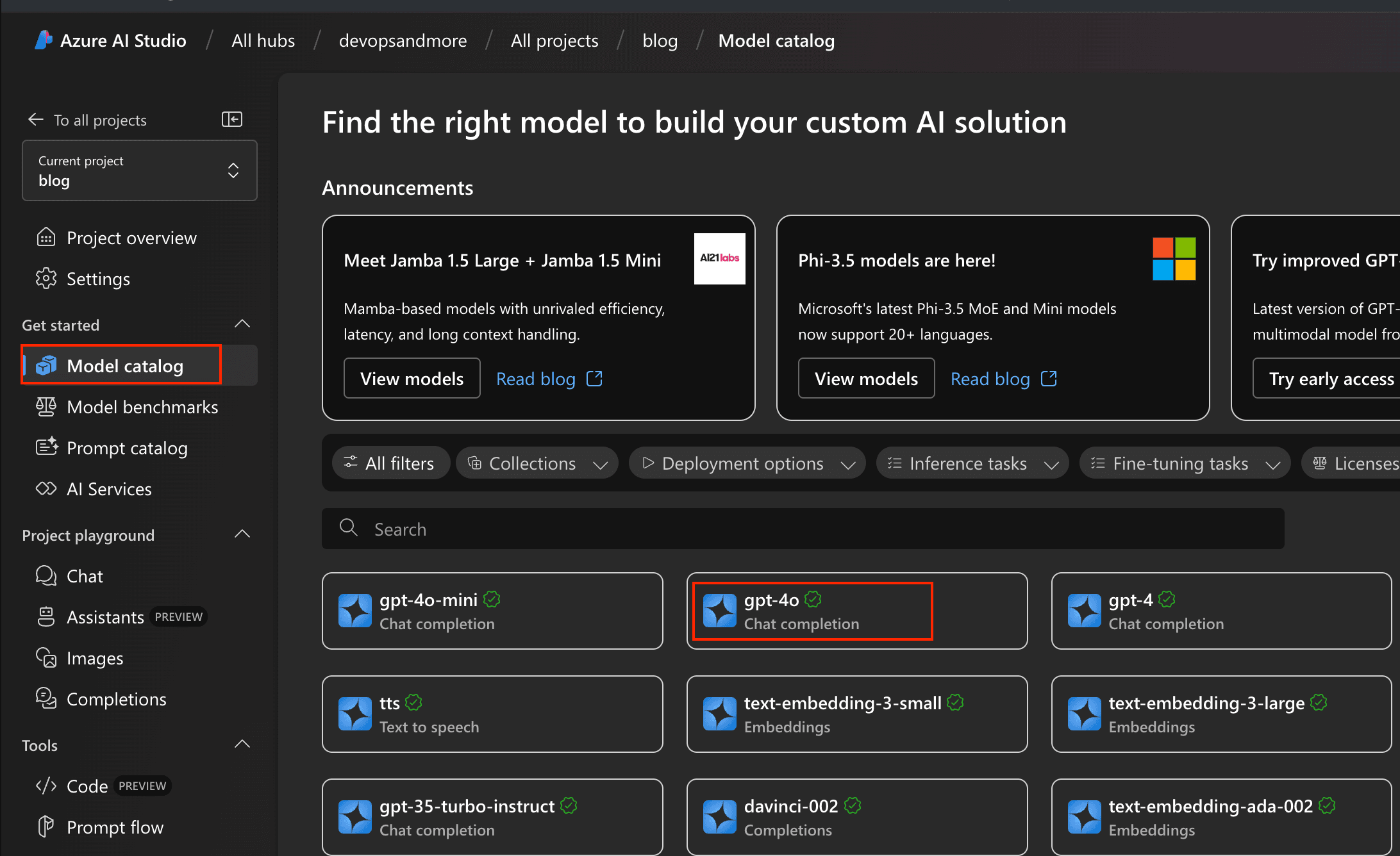 Azure Ai Studio Model Catalog