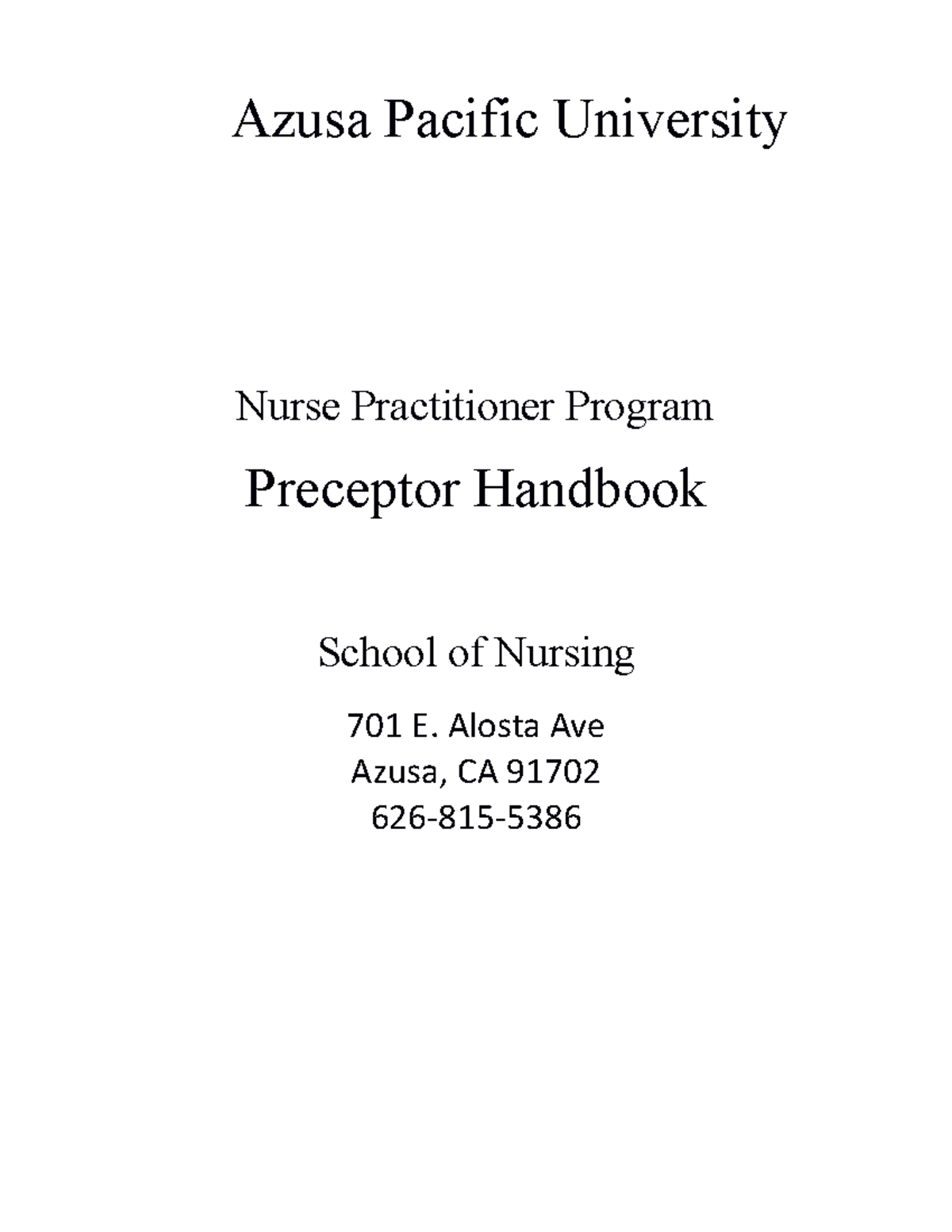 MSN Preceptor Handbook Azusa Pacific University Nurse Practitioner