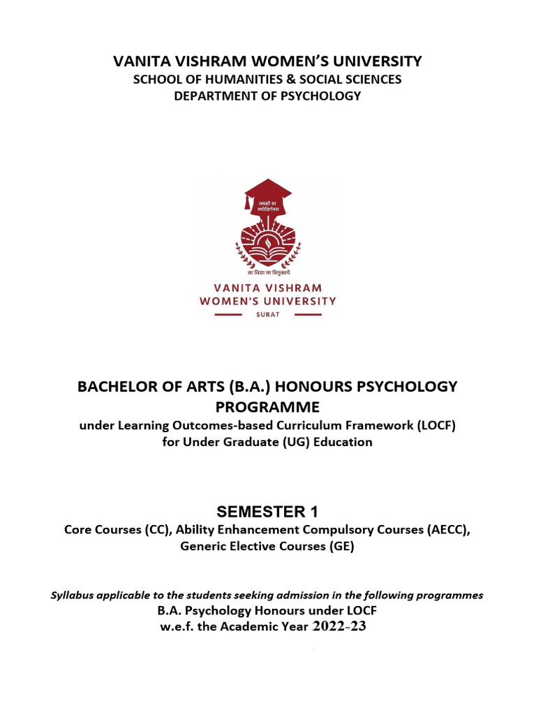 BA Psychology Sem 1 Syllabus PDF Psychology Emotions
