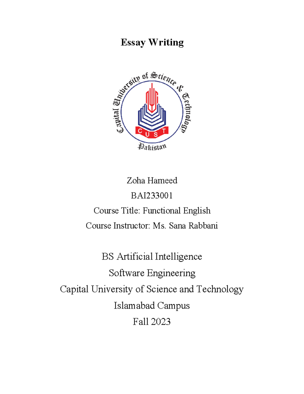 Women and Future English I Essay Writing Zoha Hameed BAI Course