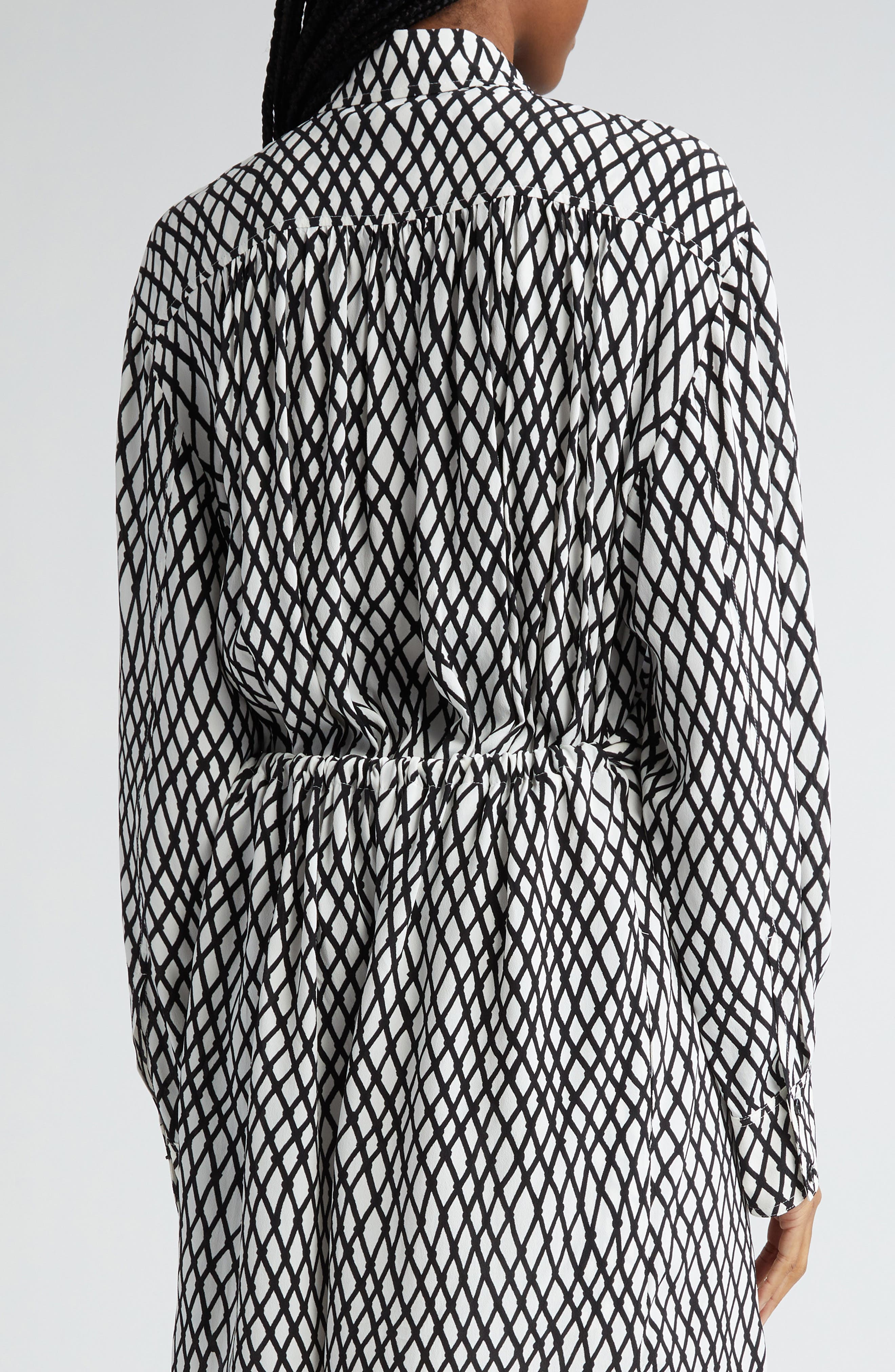 Proenza Schouler Bailey Net Print Long Sleeve Crepe Midi Shirtdress