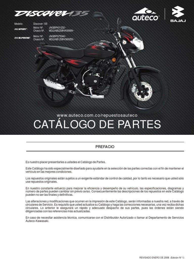 BAJAJ DISCOVER 135 2008CATALOGO DE PARTES Tradebit