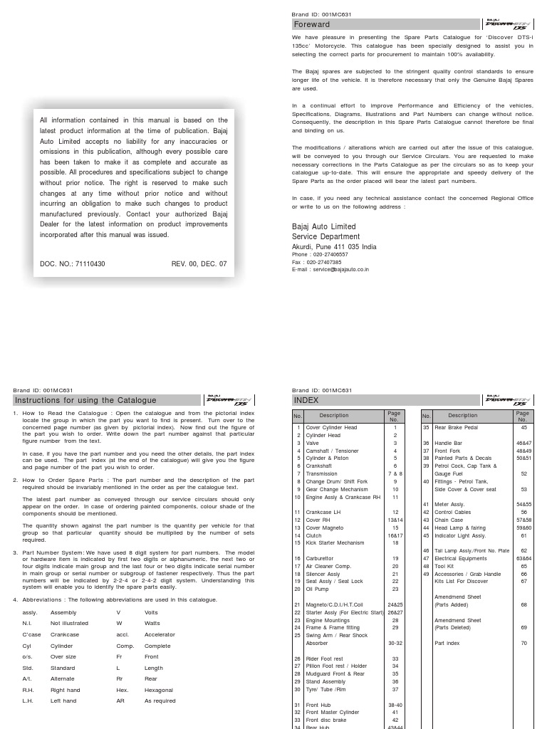 Bajaj Discover 135 Parts Manual Catalog Download