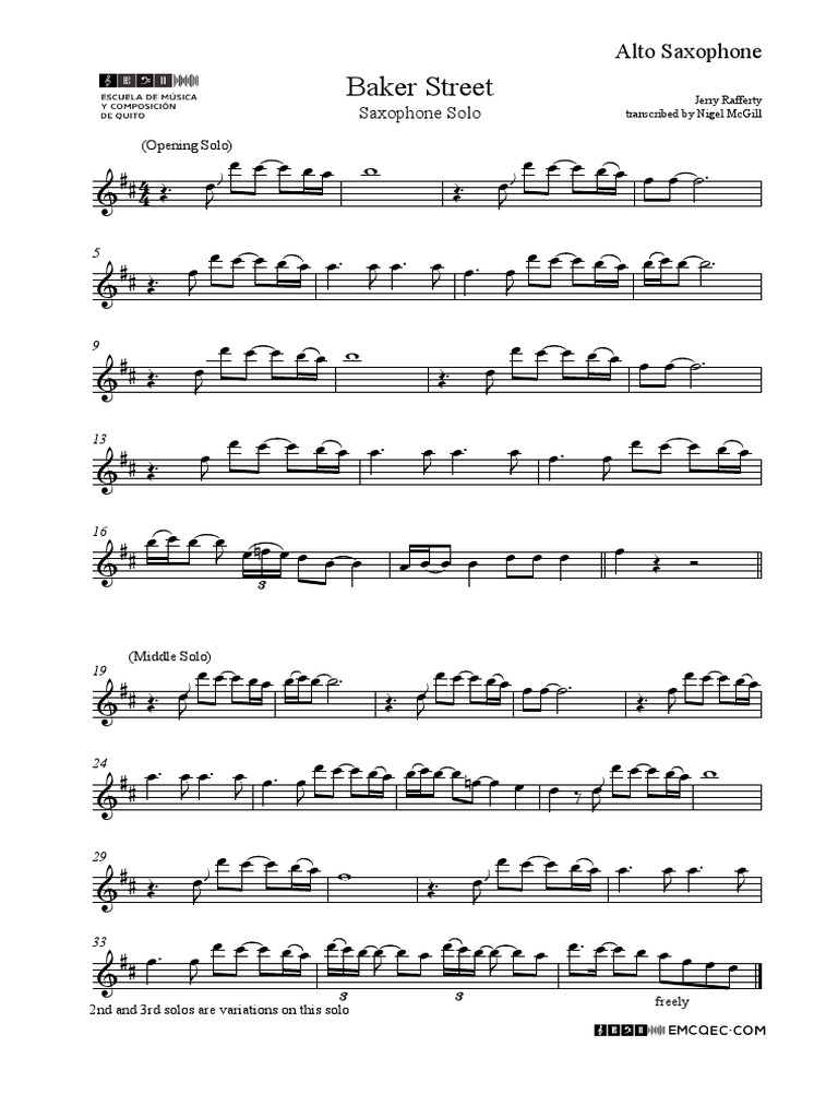 Baker Street Sax Solo PDF Musical Instruments Western European Music