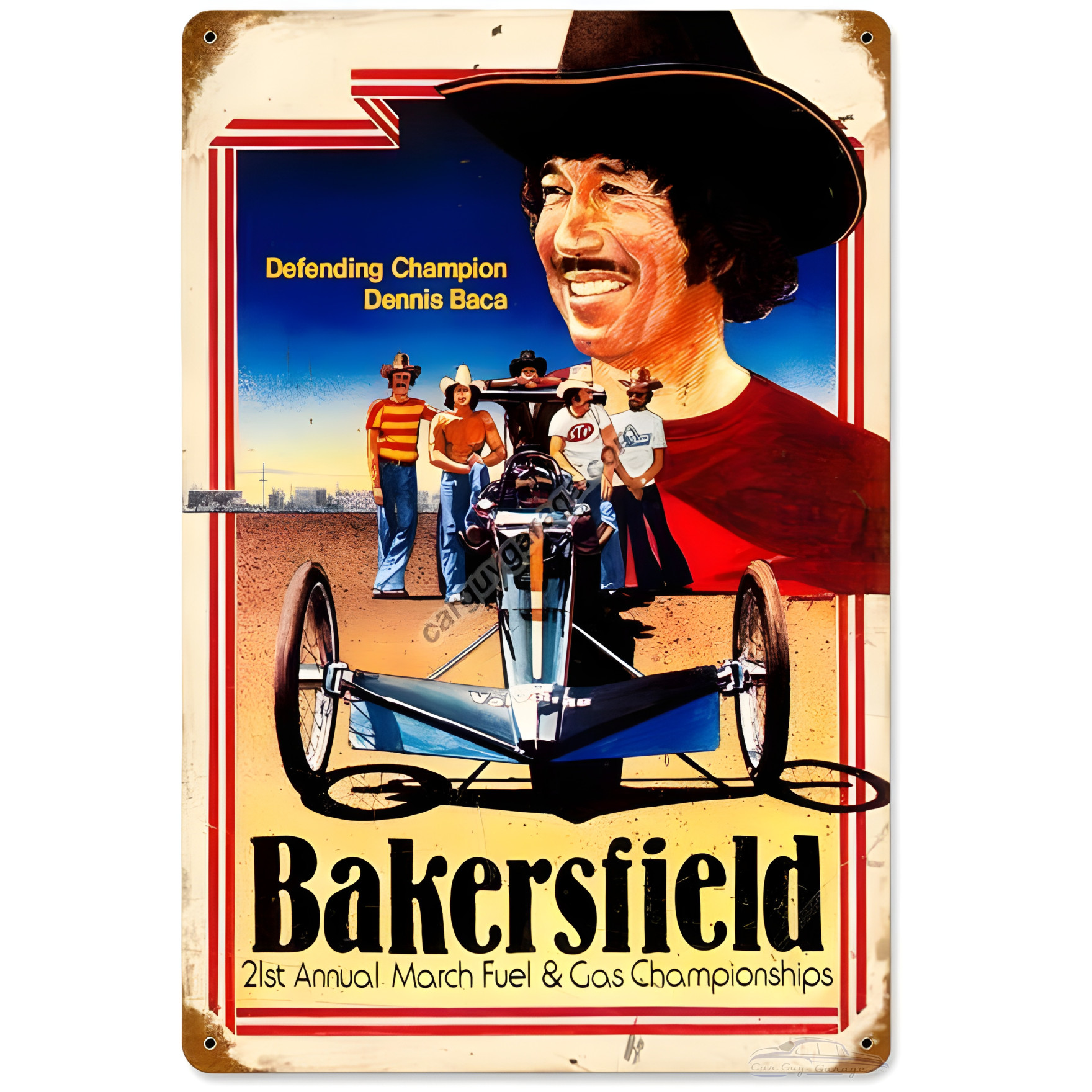 Vintage Bakersfield Baca Metal Sign Durable 18"x12" Decor