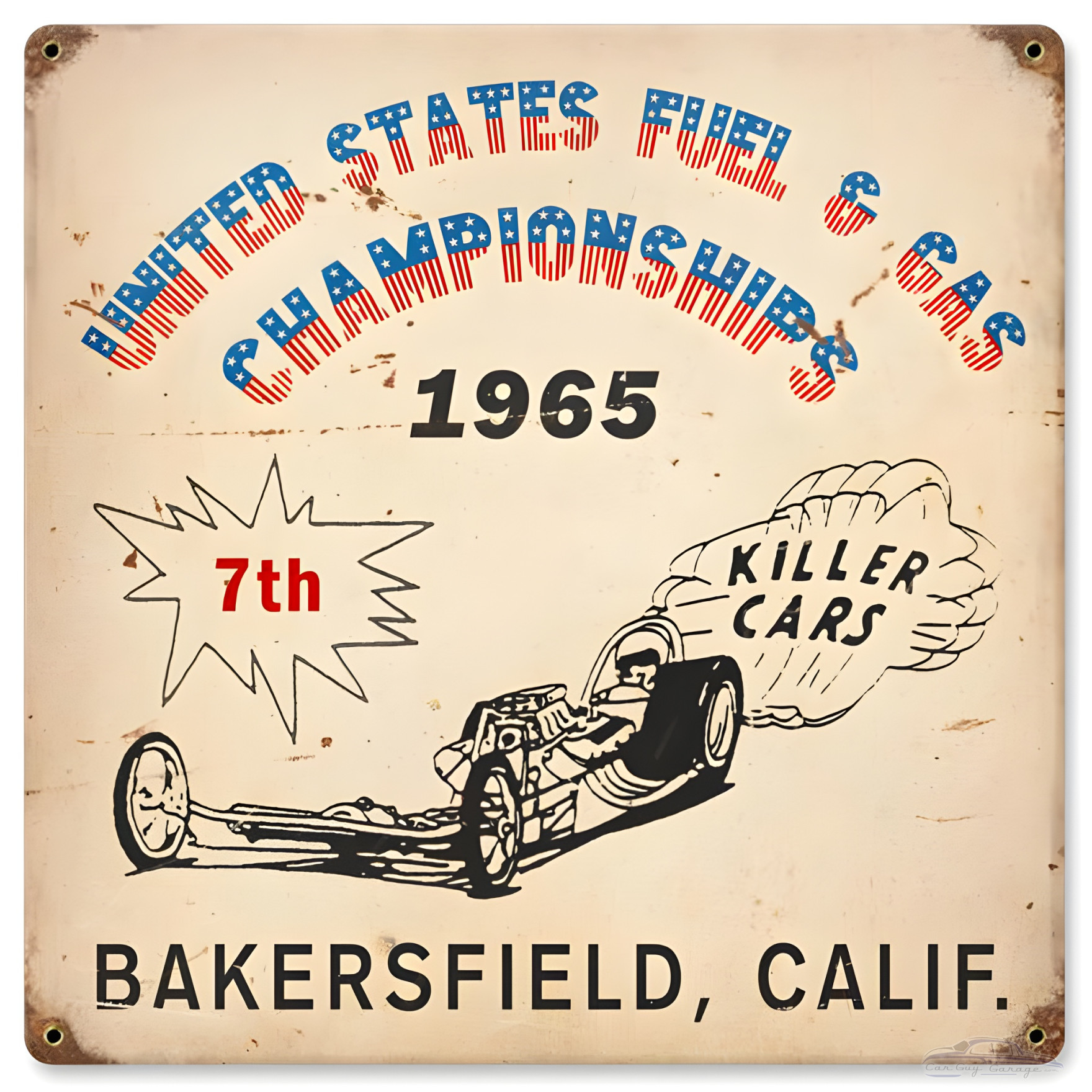 Bakersfield Killer Cars Metal Sign Vintage Style, 12"x12"