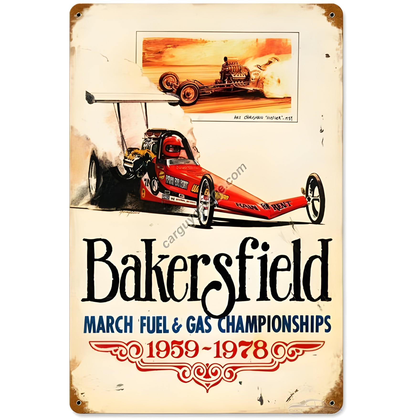 Bakersfield 59 to 78 Metal Sign Vintage Garage Decor 18"x12"