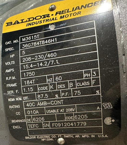 Baldor M3615T AC Motor 5 HP 1750 RPM 184T 208230//460V 3 Phase