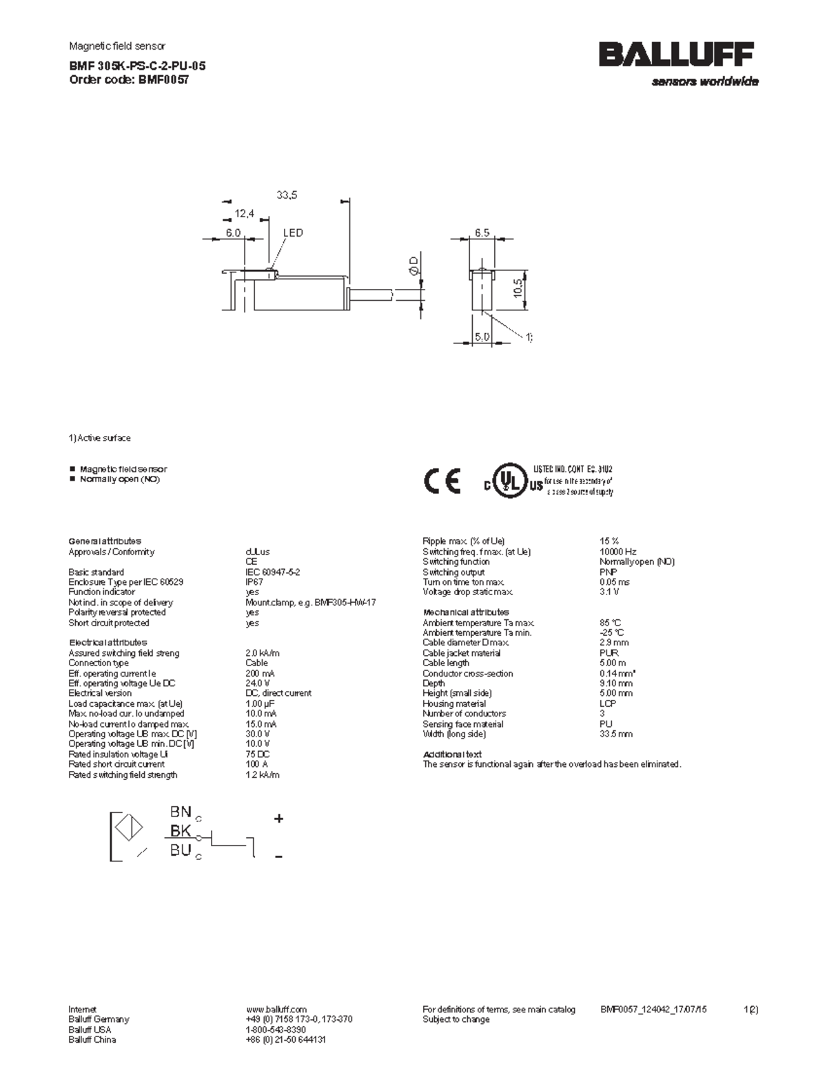 Balluff 315634 Object Detection Catalog PDF Electrical Connector
