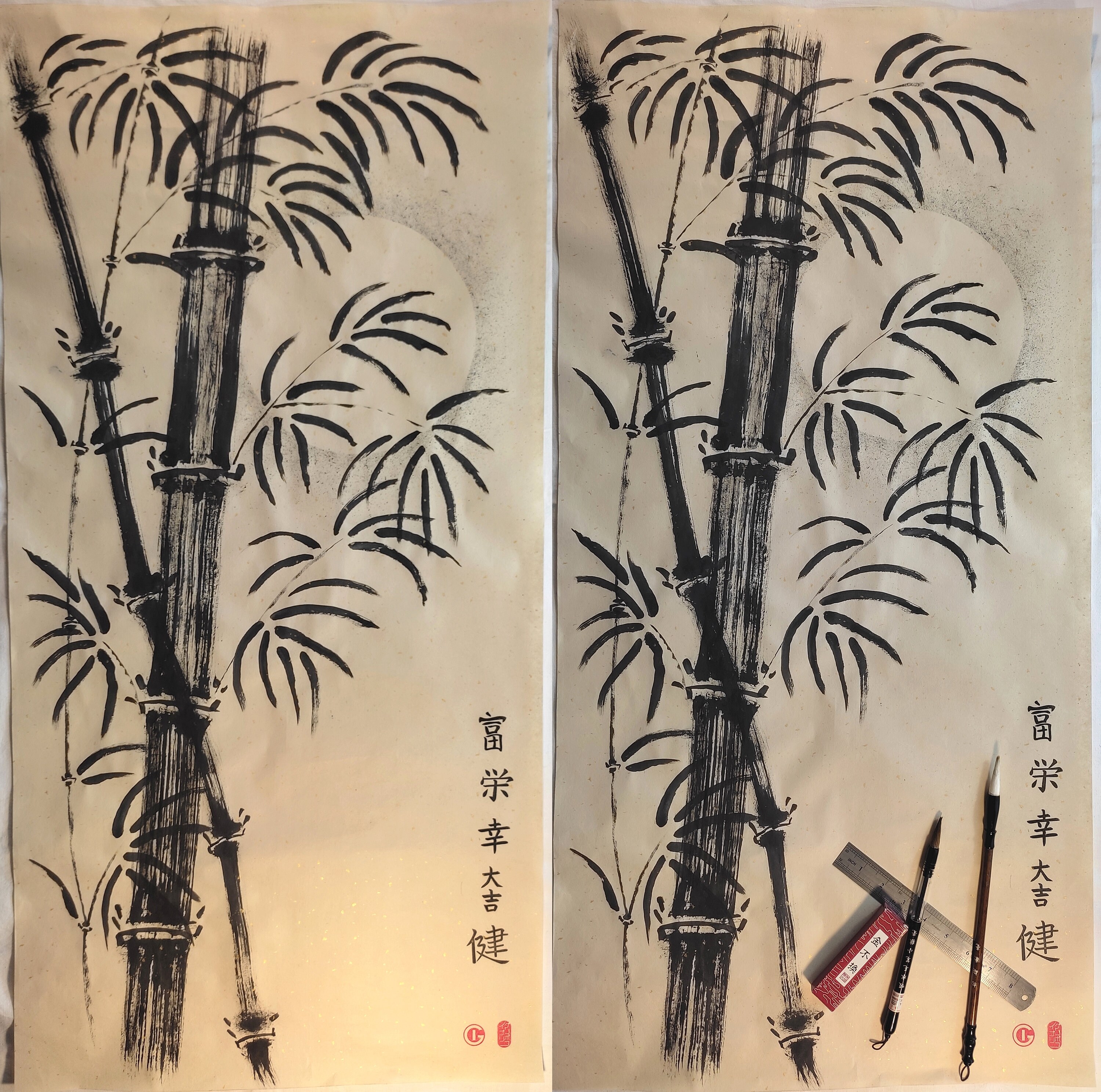 Sumie Bamboo, Ink Bamboo, Japanese Style Bamboo, Nature Decor, Hand