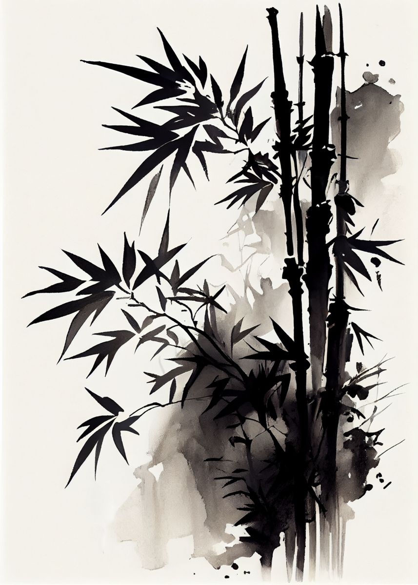 Ink monochromatic bamboo Oriental Chinese Ink Painting Drawing by