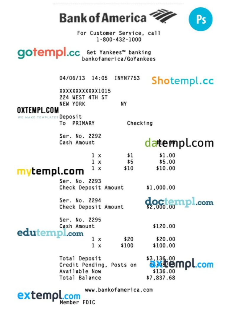 USA Bank of America check PSD template