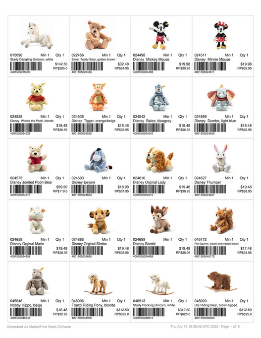Harper Group Steiff Barcode Catalog April 2023 Page 1