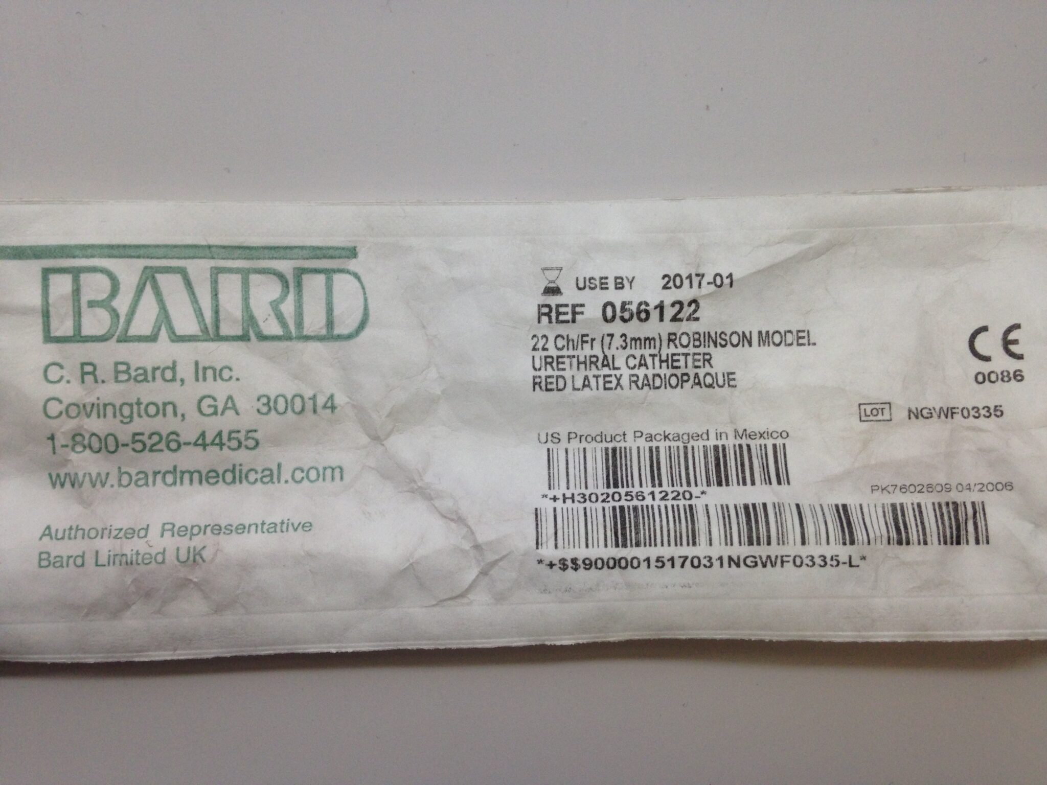 BARD 056122 Urological Catheter, 22Ch/Fr Robinson Model Urethral