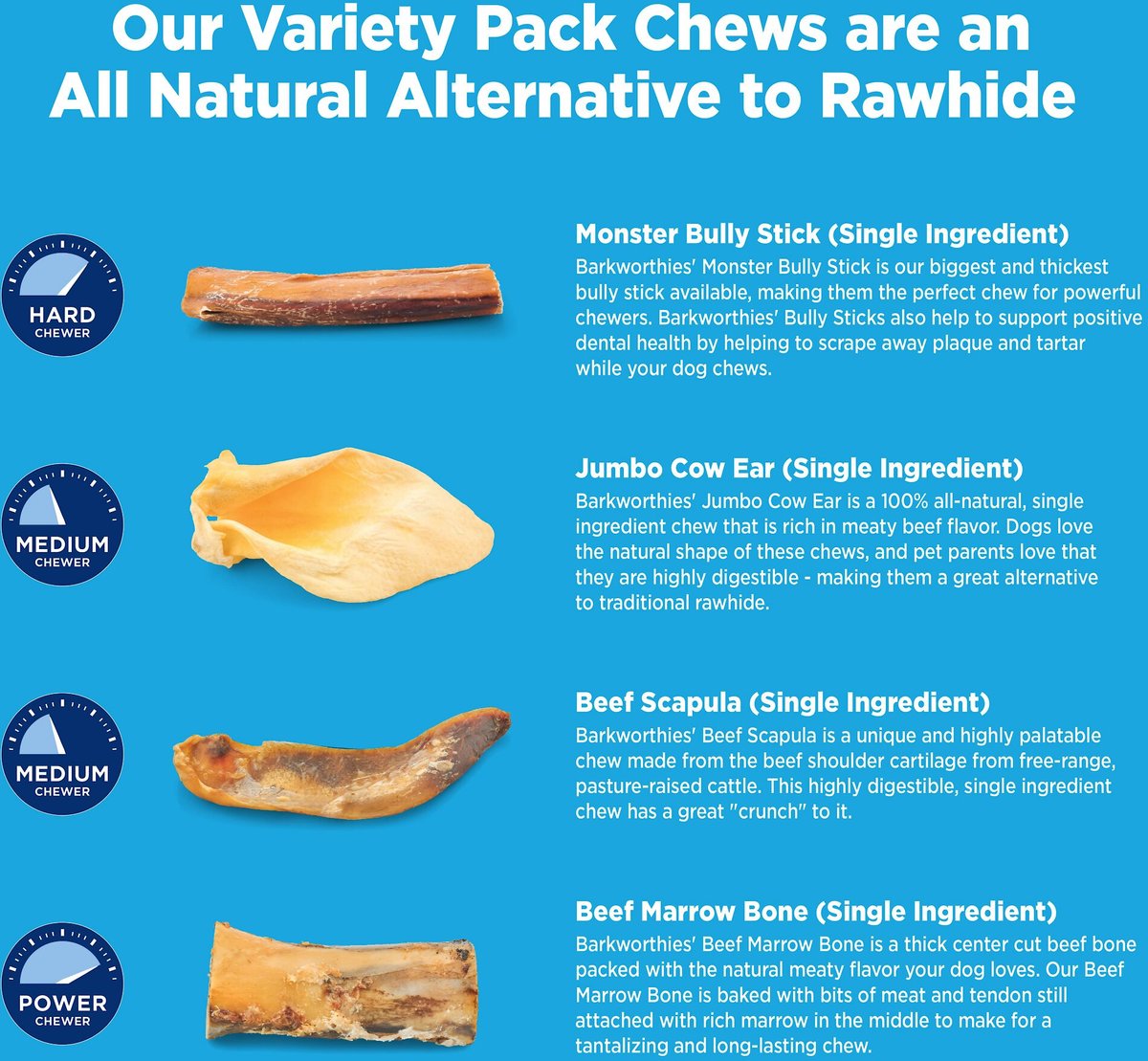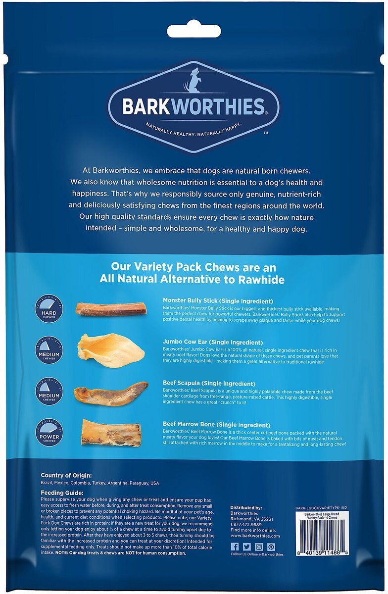 BARKWORTHIES Large Breed Variety Pack Natural Dog Chews, 4 count