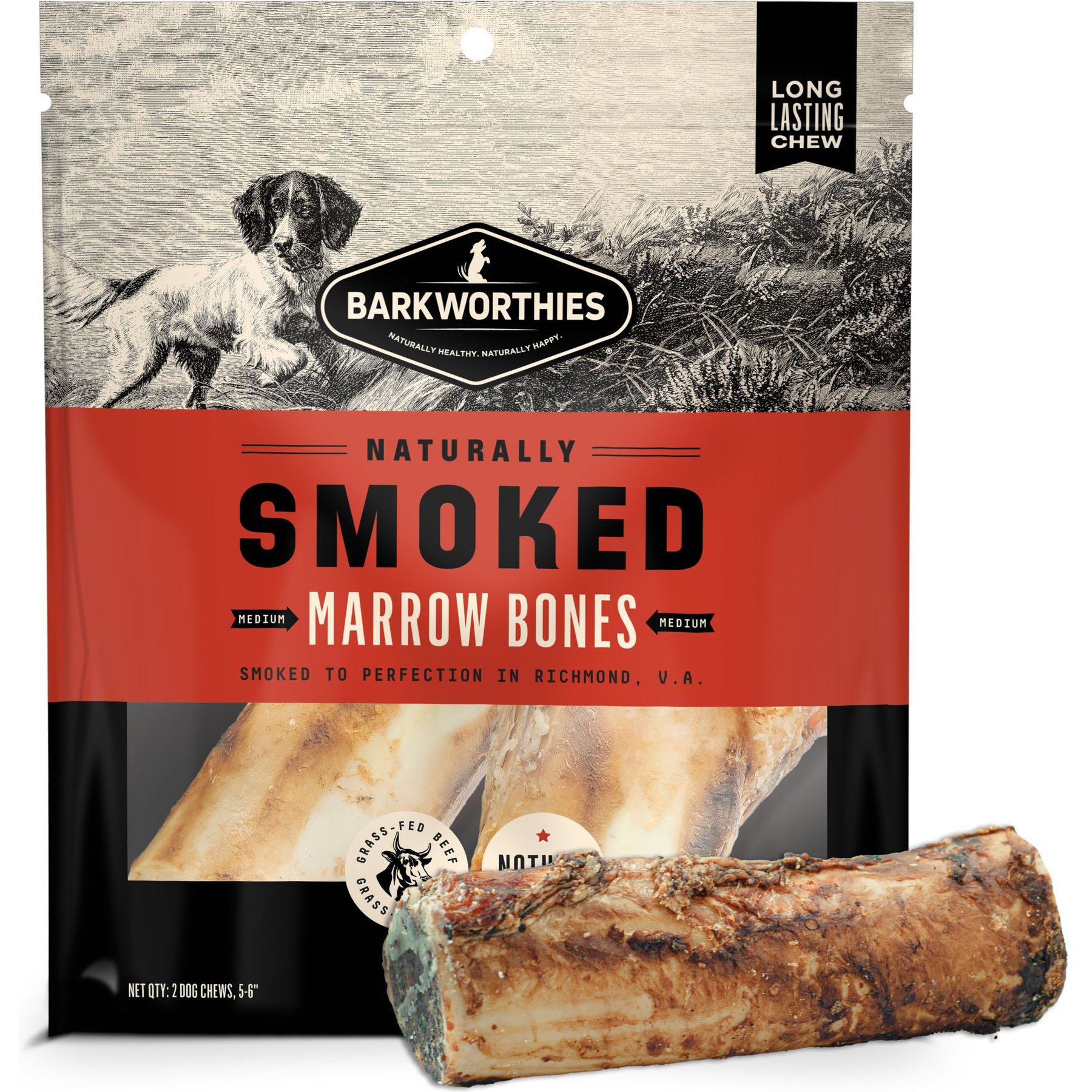 BARKWORTHIES 6in Smoked Beef Marrow Dog Bone, 2 count