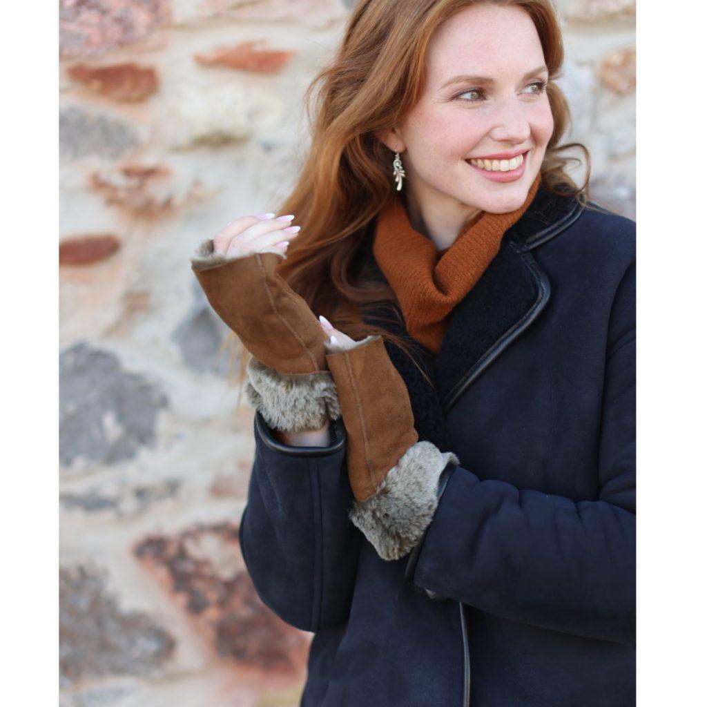 Sheepskin Fingerless Mittens Tube Ottoman Tan by Owen Barry Owen Barry