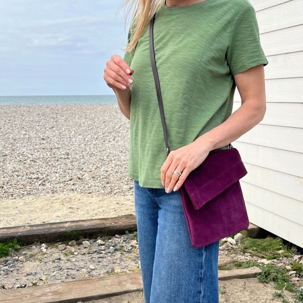 Suede Crossbody Bag Aubergine Z Top by Owen Barry Owen Barry