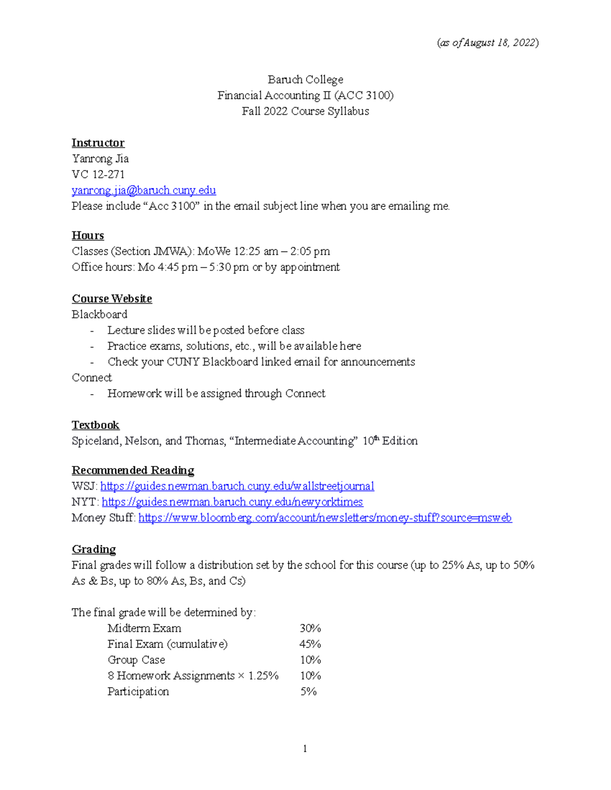 Syllabus 3100 Fall2022JMWA(3) Baruch College Financial Accounting II