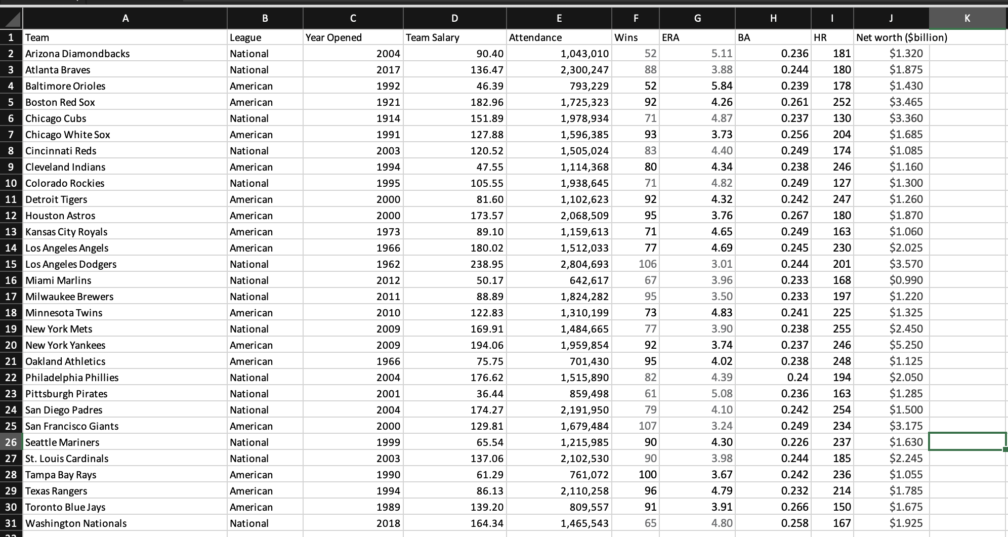 Baseball Stats Spreadsheet Template