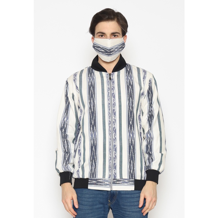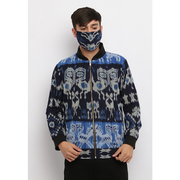 Jual Batik Etniq Craft Suga Jacket Bomber Tenun Premium Set MaskerBlue