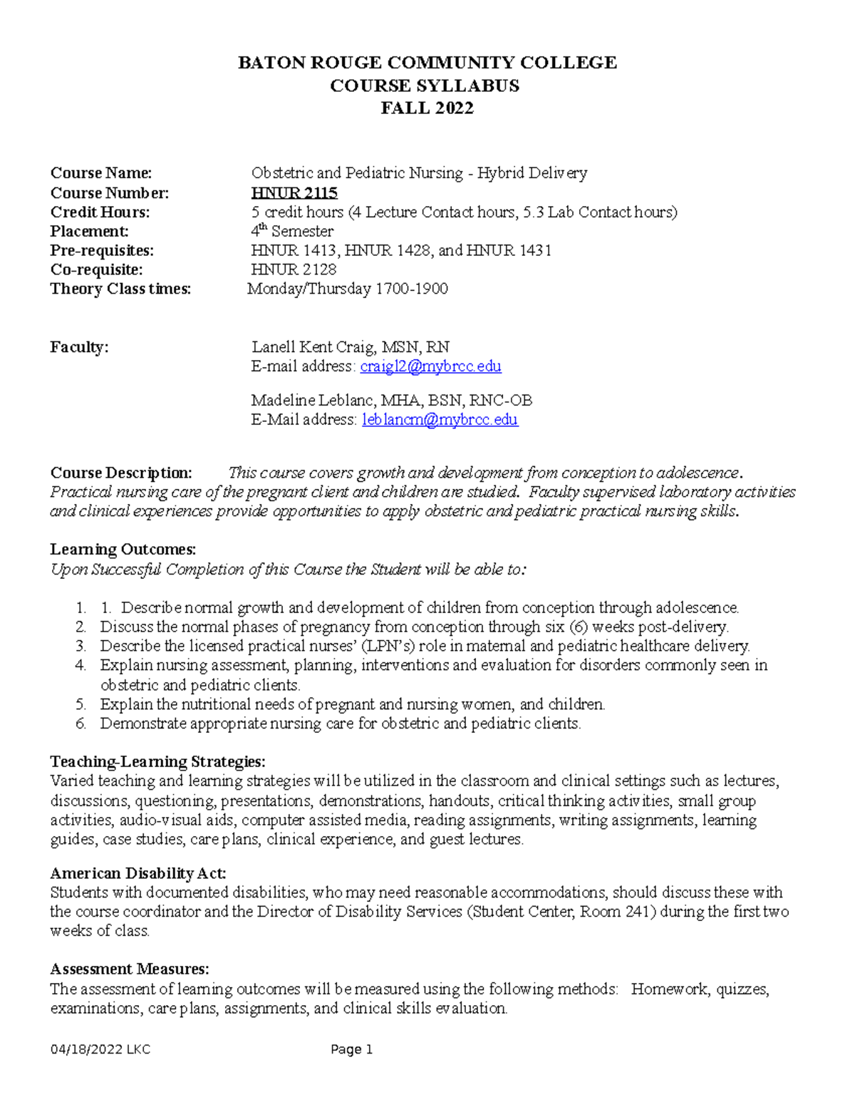 Fall 2022 Syllabus3 information BATON ROUGE COMMUNITY COLLEGE