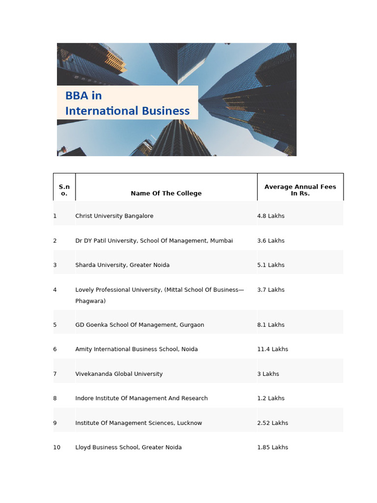 BBA Course Structure, Subject List & Fees A Student's Guide