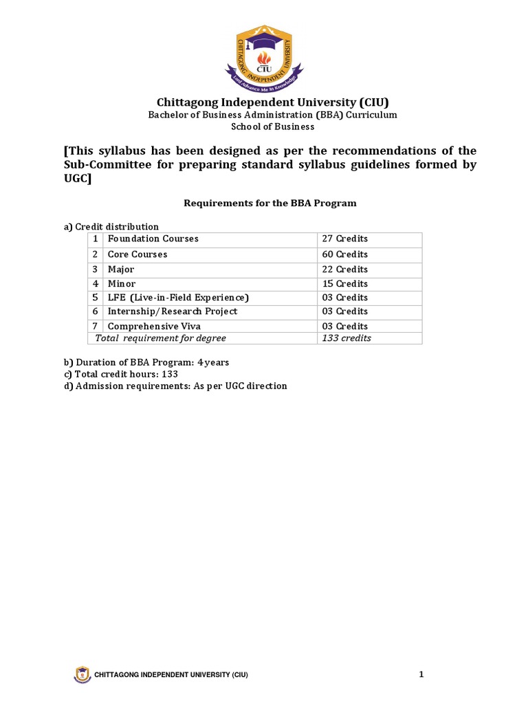 BBA CourseCatalogue PDF PDF