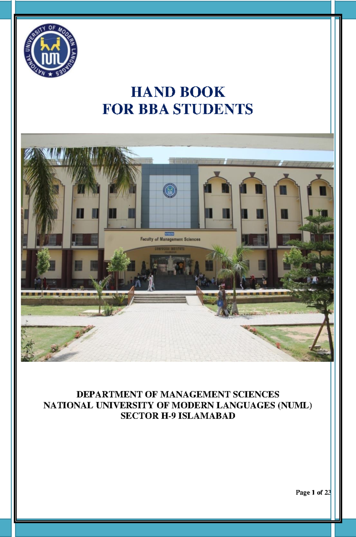 BBA Course OutlineSpring2022 HAND BOOK FOR BBA STUDENTS DEPARTMENT
