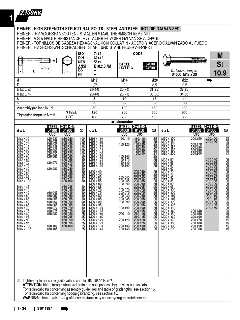 Peiner HighStrength Structural Bolts Steel and Steel Hot Dip