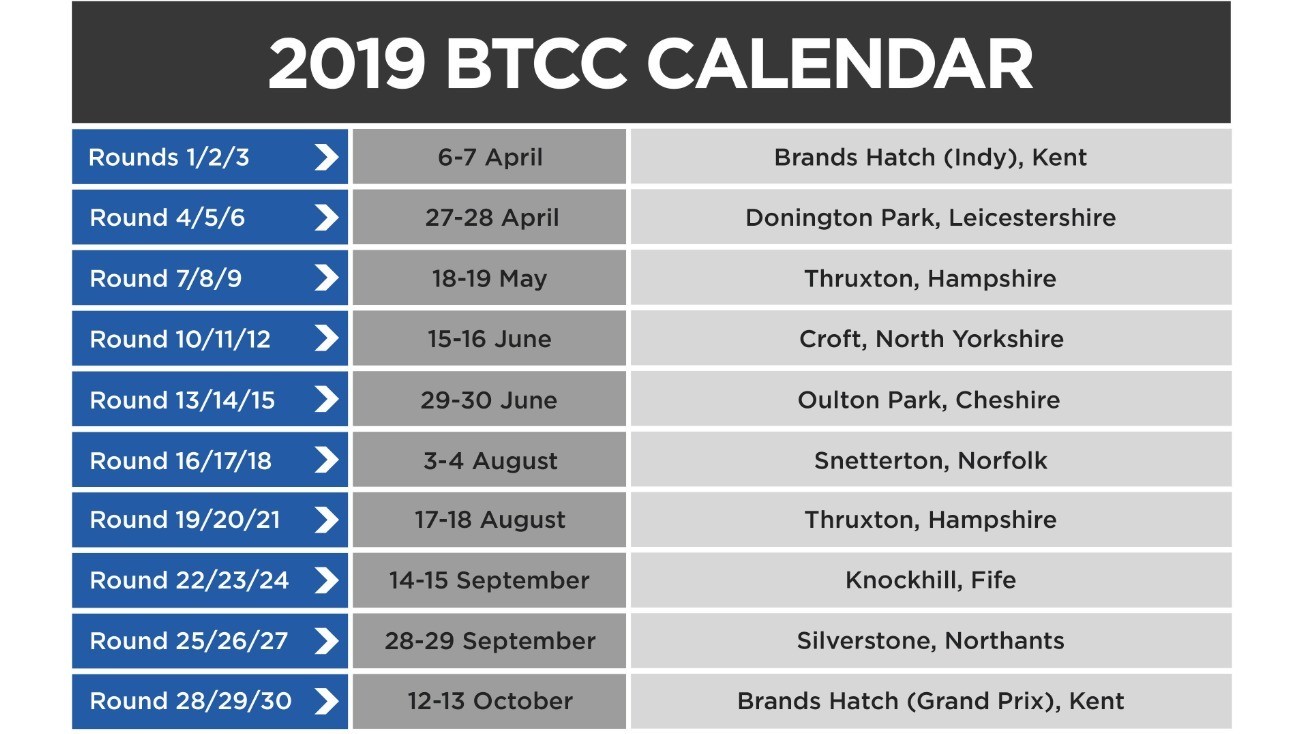 2019 BTCC Race Calendar British Touring Car Championship