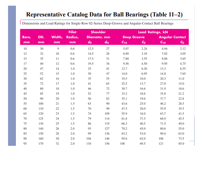 Solved QUESTION 3 A bearing manufacturer catalog in Table 2