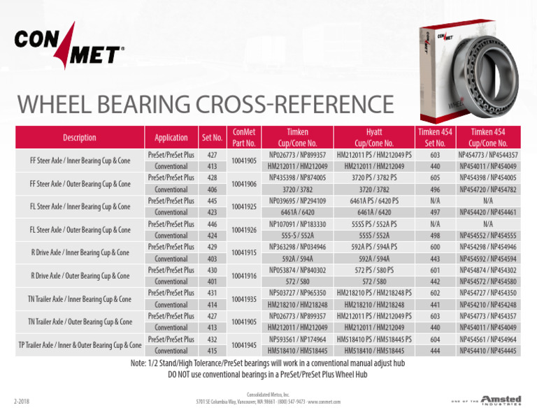 ConMet WheelBearingCrossReference PDF Axle Motor Vehicle